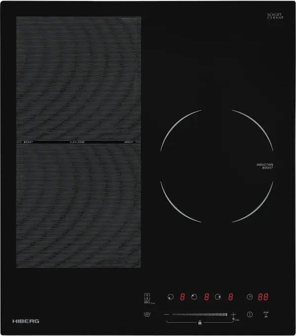 ИНДУКЦИОННАЯ 45 см, 3 зоны нагрева, FLEXZONE, 9 режимов,Сенсорное слайдерное управление, Датчики посуды, Датчики перелива жидкости с автовыключением, BOOST - увеличение мощности, Функция STOP+GO, Функция "Подогрев" Черная стеклокерамика SCHOTT CERAN (