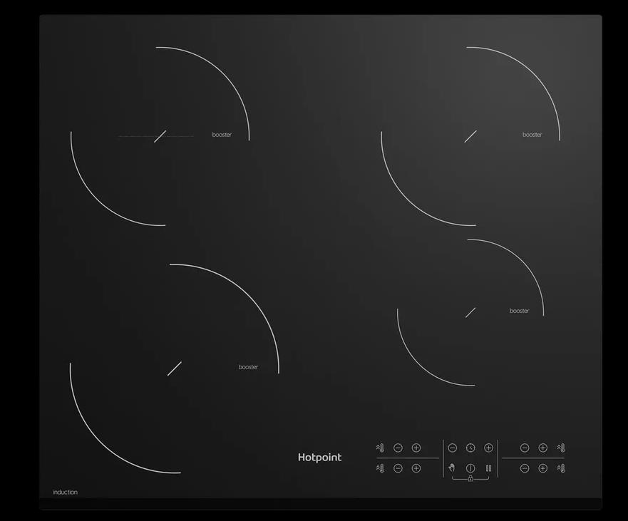Индукционная варочная поверхность, 4 зоны нагрева, функция быстрого нагрева Booster, 9-ступенчатая регулировка мощности, сенсорное управление, таймер, функция блокировки управления, индикация остаточного тепла, передний скошенный край; цвет: чёрный