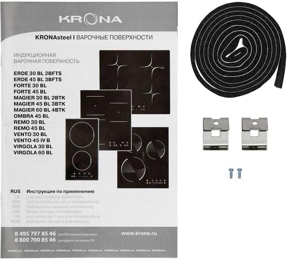 Панель варочная электрическая KRONA Индукционная варочная поверхность Erde 30 BL 2BFTS, конфорок: 2 шт., стеклокерамика, независим