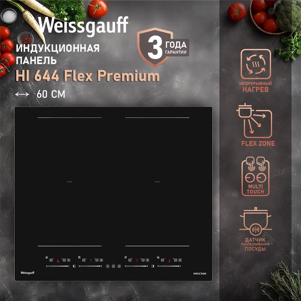 Панель варочная электрическая WEISSGAUFF Индукционная варочная поверхность HI 644 Flex, конфорок: 4 шт., стеклокерамика, независим