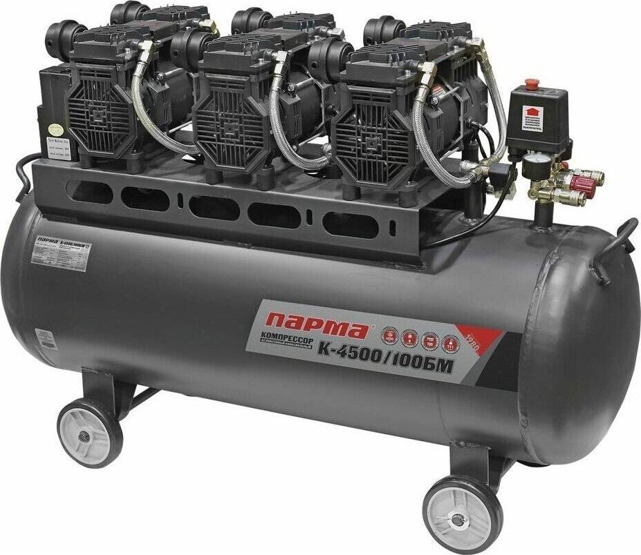 ПАРМА Компрессор поршневой БМ K-4500/100БМ безмасляный 711л/мин 100л 4500Вт серый/черный