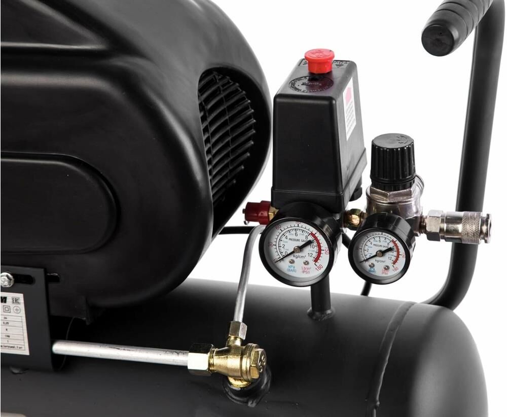 Объем ресивера: 24. Мощность: 1500. Напряжение: 230. Колеса: да. Комплектация: компрессор, гарантийный талон. Особенности: Охлаждение встроенным вентилятором. Манометр для контроля давления на выходе. Манометр для контроля давления в ресивере. Регулятор давления с предохранительным клапаном.. Вес нетто: 22. Количество выходов: 2. Количество цилиндров: 1. Габариты упаковки (ед) ДхШхВ: 0.62x0.56x0.27. Вес упаковки (ед): 21.5. Гарантия: 12 мес.. Цвет: серый / черный. Давление: 8 Бар. Производительность: 198 л/мин. Давление: 8 Бар. Мощность: 1500 Вт. Ресивер: 24 л. Производительность: 198 л/мин. Вес: 22 кг
