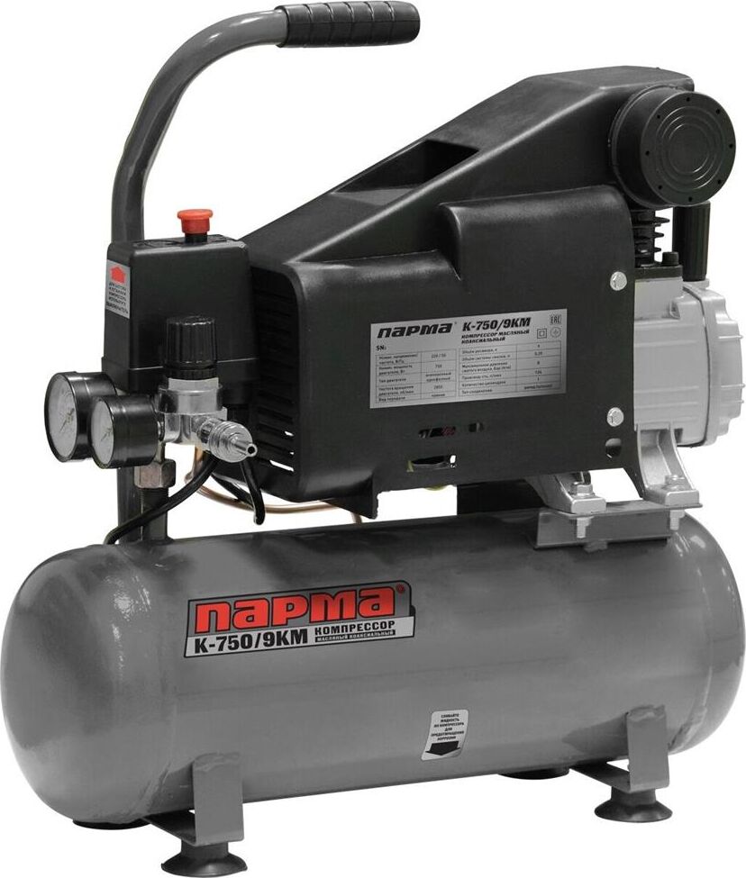 ПАРМА Компрессор поршневой K-750/9КМ масляный 126л/мин 9л 750Вт серый/черный