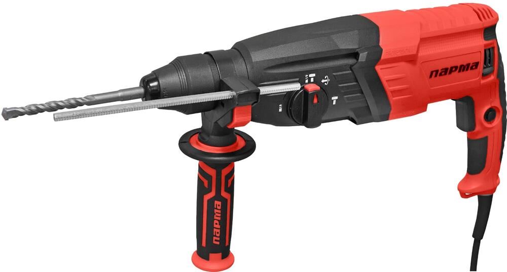 Потребляемая мощность: 1000. Крутящий момент: 35. Количество скоростей: односкоростной. Наличие функции "сверление": есть. Наличие функции "сверление с ударом": есть. Наличие функции "удар без сверления": есть. Максимальная энергия удара: 3.3. Количество патронов в комплекте: один. Тип основного патрона: SDS-plus. Максимальный диаметр сверления (сталь): 13. Максимальный диаметр сверления (дерево): 30. Наличие функции "реверс": есть. Наличие предохранительной муфты: нет. Встроенный фонарик: нет. Дополнительная рукоятка: есть. Ограничитель глубины сверления: есть. Жесткий кейс в комплекте: есть. Вес инструмента: 3.3. Длина сетевого кабеля: 2.2. Длина инструмента: 430. Высота инструмента: 300. Комплект поставки: Перфоратор, ограничитель глубины сверления, плоское долото, пика-долото, набор буров, руководство по эксплуатации, гарантийный талон, кейс.. Тип электропитания: от электросети. Габариты упаковки (ед) ДхШхВ: 0.426x0.104x0.297. Вес упаковки (ед): 7.5. Страна производства: Китай. Гарантия: 12 мес.. Число об