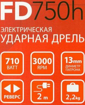 Макс. количество ударов, уд/мин 44800, Частота вращения, об/мин 0-2800, Макс. диаметр сверления (металл/бетон/дерево), мм 13/13/25, Тип патрона быстрозажимной, Диаметр патрона, мм 13, Регулировка скорости, положений, Потребляемая мощность, Вт 710, Наличие реверса, Режим сверления с ударом, Защита от пыли, Прорезиненная рукоятка, Прорезиненный морозостойкий кабель.
