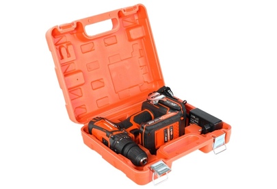 дрель-шуруповерт аккумуляторная, аккумулятор (2 шт.), зарядное устройство, двусторонняя бита, инструкция с гарантийным талоном, кейс