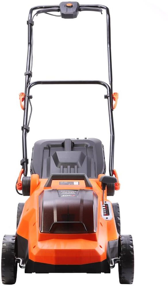 Ширина скашивания, см 38 Высота скашивания, мм 25-75 Количество режимов регулировки высоты 6 Объем травосборника, л 30 Рекомендуемая площадь обработки, м² 400 Тип двигателя щеточный Макс. частота вращения ножей, об/мин 3000 Напряжение аккумулятора, В 40 (2*21) Емкость аккумулятора, А*ч 4,0 Тип аккумулятора Li-ion Аккумулятор и ЗУ в комплекте нет Выброс травы травосборник/мульчирование Заглушка для мульчирования есть Самоходная (привод на колесах) нет Регулировка высоты скашивания центральная Материал травосборника пластик/ткань Материал деки пластик Диаметр колес (передние/задние), мм 160/200 Конструкция колесной пары без подшипников Регулировка скорости нет Индикатор наполнения травосборника есть Штуцер для промывки деки нет Панель с подставкой под стакан нет Ручка для транспортировки есть Складная рукоятка есть Уровень шума при работе, дБ 92