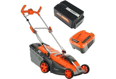 Тип аккумулятора Li-ion, Емкость аккумулятора, А*ч 2.5, Частота вращения, об/мин 4000, Объем травосборника, л 40, Тип двигателя бесщеточный, Уровень звукового давления, дБ 96, Ширина скашивания, см 37, Количество режимов регулировки высоты 5, Высота скашивания, мм 25-75, Тип рукоятки складная, Электронная защита аккумулятора, Тип питания аккумуляторный, Материал корпуса пластик, Время заряда, час 1.5, Количество аккумуляторов в комплекте, шт 1. Напряжение, В 40