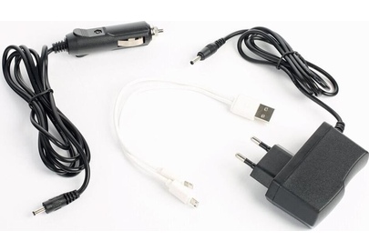 комплектация: сетевой адаптер, адаптер зарядки от прикуривателя автомобиля, силовые зажимы для подключения к автомобильному аккумулятору с защитой, адаптер для телефонов, кейс для хранения и транспортировки