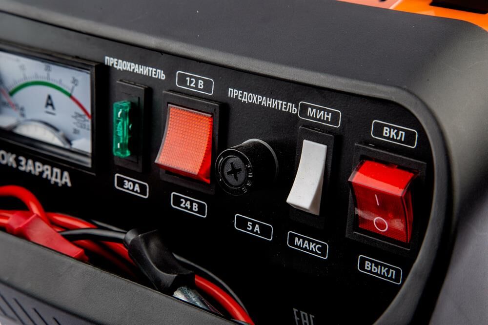Устройство для бытового полупрофессионального или профессионального использования. Предназначено для зарядки свинцовых, кислотных аккумуляторов напряжением 12В и 24В. Ускоренный режим зарядки с повышенным током. Устройство высокого качества, удобно в использовании, оснащено переключателем напряжения тока, амперметром, защитой от перегрузки, неправильной полярности, короткого замыкания. Отсек для хранения проводов.