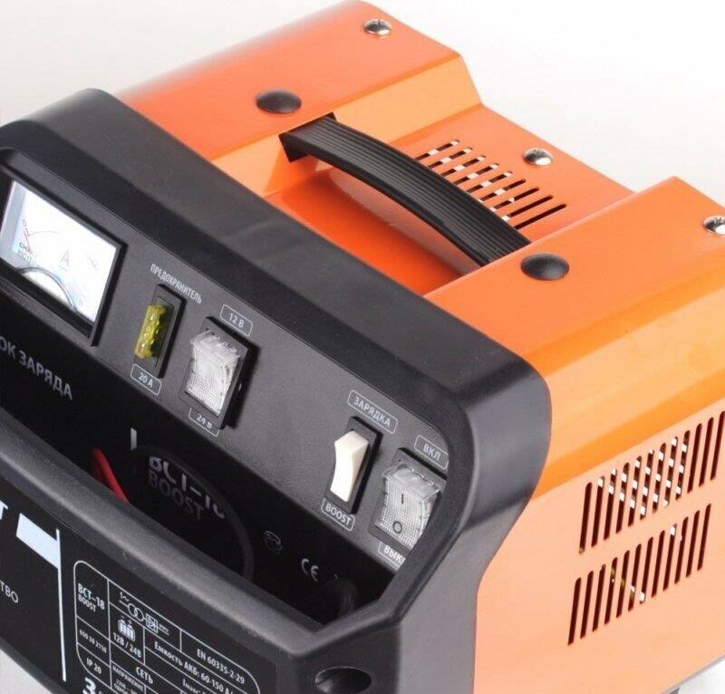Устройство для бытового полупрофессионального или профессионального использования. Предназначено для зарядки свинцовых, кислотных аккумуляторов напряжением 12В и 24В. Ускоренный режим зарядки с повышенным током. Устройство высокого качества, удобно в использовании, оснащено переключателем напряжения тока, амперметром, защитой от перегрузки, неправильной полярности, короткого замыкания. Отсек для хранения проводов.