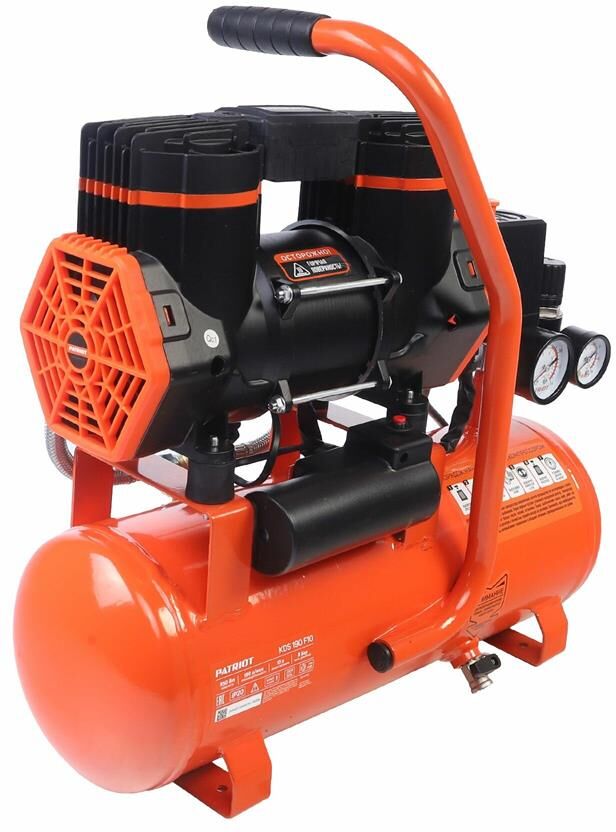 Поршневой безмасляный компрессор PATRIOT KDS 190 F10 (10 литров) для работы с пневмоинструментом. Безмасляный компрессор не требует установки маслоотделителей, подойдет для краскопульта и аэрографа. Подходит для использования в гараже, мастерской, во время ремонта или строительства. Компрессор с рабочим давлением 8 бар очень тихий для своей категории, всего 70 дБА. Двухполюсной высокооборотистый двигатель с термозащитой обладает высокой производительностью. Двухцилиндровый компрессор способен справляться с интенсивными задачами. Увеличенные ребра охлаждения способствуют эффективному отводу тепла во время длительной непрерывной работы. В компрессоре предусмотрены функции защиты от перегрева, превышения тока, а также есть предохранительный и электромагнитный клапаны. Два выхода: быстросъемный типа «RAPID» с запирающим ниппелем и «елочка» с шаровым краном. Два манометра основной на давление в ресивере и дополнительный с редуктором для предустановки нужного давления. Удобная рукоятка и прорезиненные колеса для уд