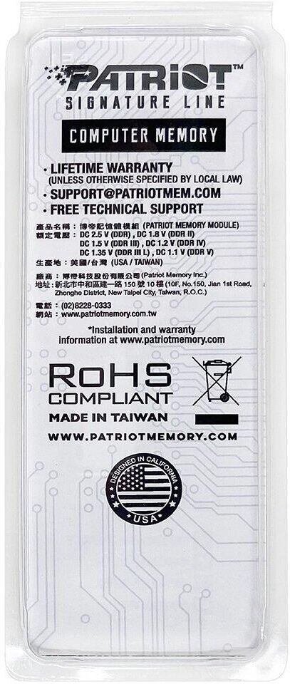 PATRIOT Оперативная память Signature Line PSD58G560041S DDR5 - 1x 8ГБ 5600МГц, для ноутбуков (SO-DIM