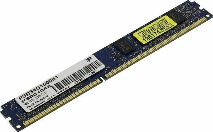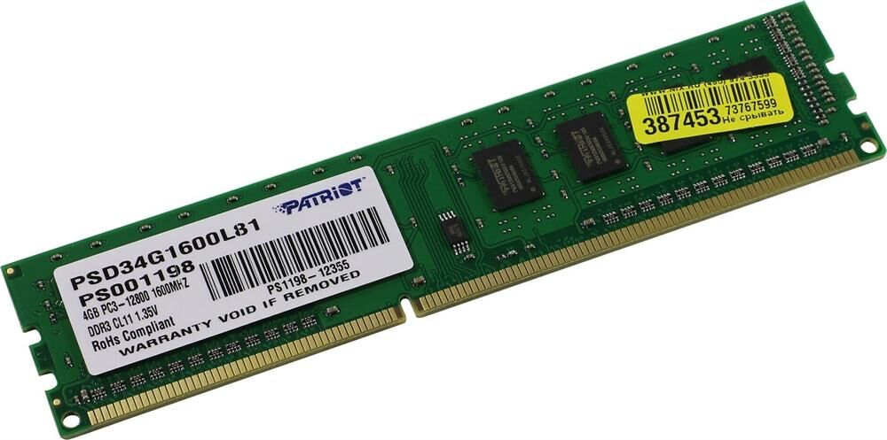 PATRIOT Оперативная память Signature PSD34G1600L81 DDR3L - 1x 4ГБ 1600МГц, DIMM, Ret