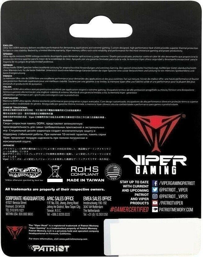 PATRIOT Оперативная память Viper Steel PVS432G266C8S DDR4 - 1x 32ГБ 2666МГц, для ноутбуков (SO-DIMM)