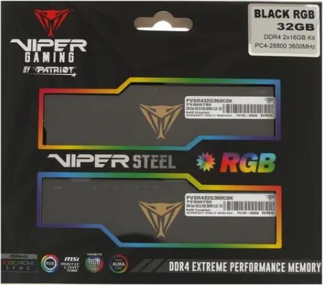 PATRIOT Оперативная память Viper Steel PVSR432G360C0K DDR4 - 2x 16ГБ 3600МГц, DIMM, Ret