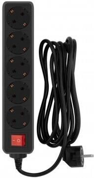 PC PET AP01006-3-B 3м (5 розеток) черный (пакет ПЭ)