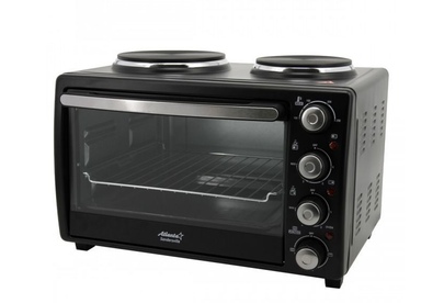 ATLANTA ATH-1410 (BLACK) Объём 30 литров Варочная поверхность Выбор различных комбинаций работы нагревательных элементов Регулятор температуры 0-250 °C Защита от перегрева Световой индикатор работы Кабель питания 80см Номинальная мощность 3200 Вт 230 B ~ 50 Гц