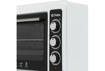 DELTA D-0123 белая Номинальная потребляемая мощность 1300 Вт Внутренний объем 37 л Тип нагревательного элемента ТЭН Количество ТЭНов 2 штуки Мощность ТЭНа 650 Вт Время разогрева до рабочей температуры 10 минут Регулируемый термостат 50-320°С Таймер 0-90 минут Размеры противня 36х34х3.5см Два ТЭНа повышенной мощности: верхний и нижний Специальное покрытие внутренней камеры концентрирует тепло, облегчает чистку и уход Дверца из термостойкого стекла Решетка Прямоугольный противень Регулируемая высота полки Световой индикатор работы Три режима работы Регулировка температуры от 50° до 320°С Функция автоотключения - отключение духовки по окончании времени приготовления Звуковое оповещение о конце приготовления Таймер на 90 минут