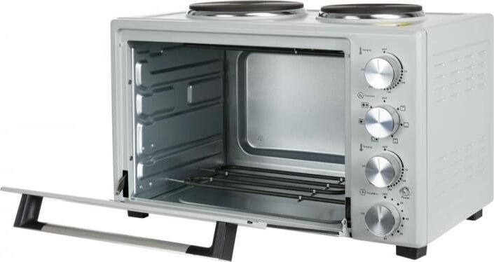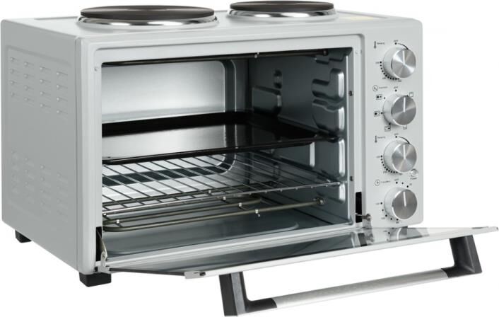 объем — 38 л Количество режимов работы — 6 Мощность духовки - 1600 Вт Мощность конфорок - 600+100 Вт Таймер с отключением - до 120 мин Максимальная температура — 250 °С внутренняя подсветка - да Вес нетто/брутто 9,2 / 10,7 кг Габариты изделия - 534х379х345 мм Габариты духовой камеры, ШхГхВ - 382х330х291 мм Габариты коробки - 580х415х395 мм