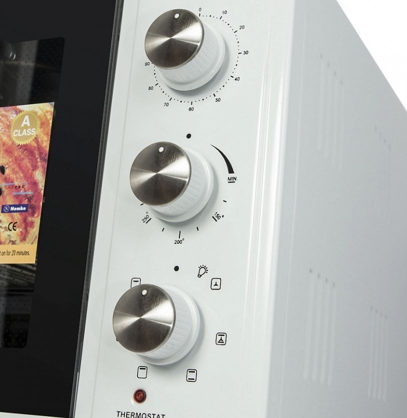Гриль - есть; Комфорки сверху - нет; Конвекция - есть; Мощность,Вт - 1500; Объем л. - 45; Таймер - есть; Цвет - белый;