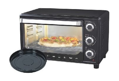 27л, духовка 1500Вт, механ.управление, 3 режима работы духовки (верх, низ, верх+низ), таймер на 60 минут, регулировка температуры духовки, комплектация - металлическая решетка, противень, круглая форма для выпечки (230x50мм), ухват. Цвет: чёрный.