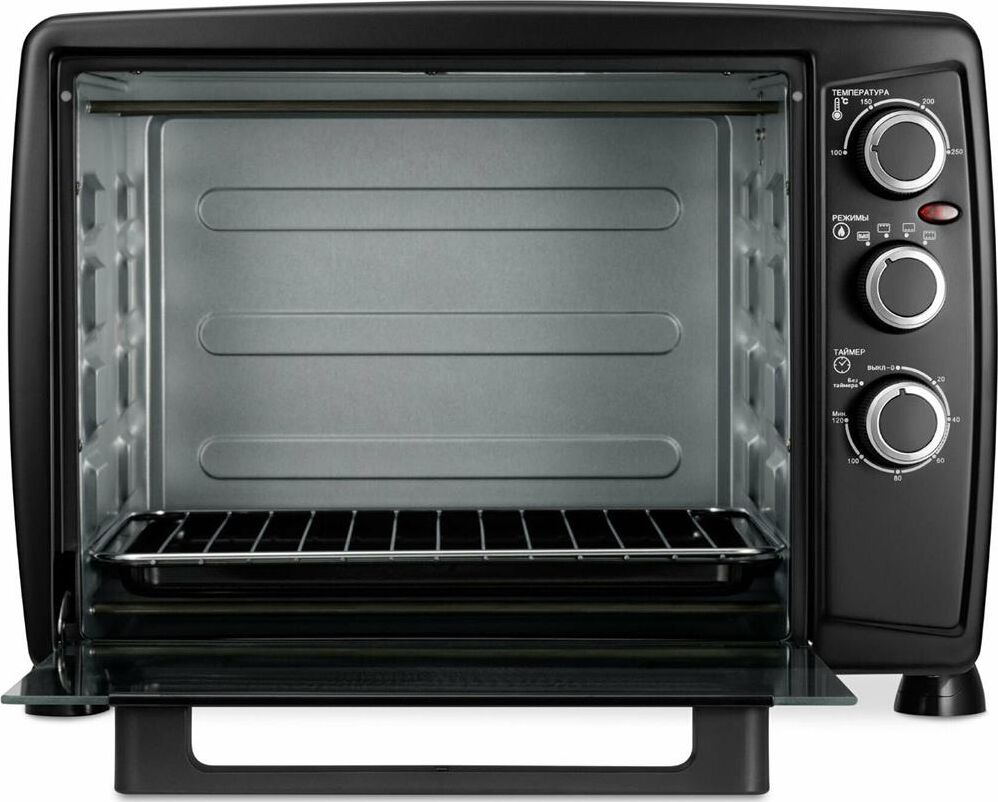 1500 Вт, объем камеры 35 л, цвет церный, таймер на 120 мин + функция "работа без таймера", температура нагрева до 250 C, 3 режима работы (верхний нагрев, нижний нагрев, одновременный верхний и нижний нагрев), Напряжение питания 230 В; Частота 50 Гц, световой индикатор, Механический тип управления, ножки с нескользящей опорой, внутренняя подсветка, современный дизайн, Аксессуары: эмалированный прямоугольный противень, решетка гриль, ухват для снятия противня, Размеры без упаковки (см): 50,5x37x36,5 и Вес нетто без упаковки (кг): 7,1