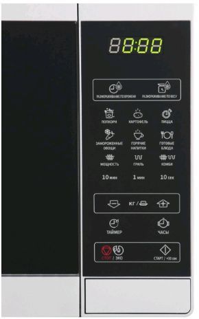 Объем камеры 20 л *Цвет серебристый * Диаметр поворотного стола 25.5 см * Внутреннее покрытие эмалированная сталь * Мощность гриля 1000 Вт * Тип гриля ТЭН * Функция "Кухонный таймер" * Автоменю 6 программ * Блокировка от детей * Тип открывания дверцы клавиша * Тип управления электронный * Звуковой сигнал *