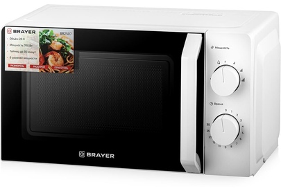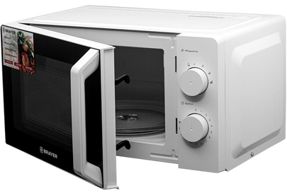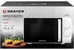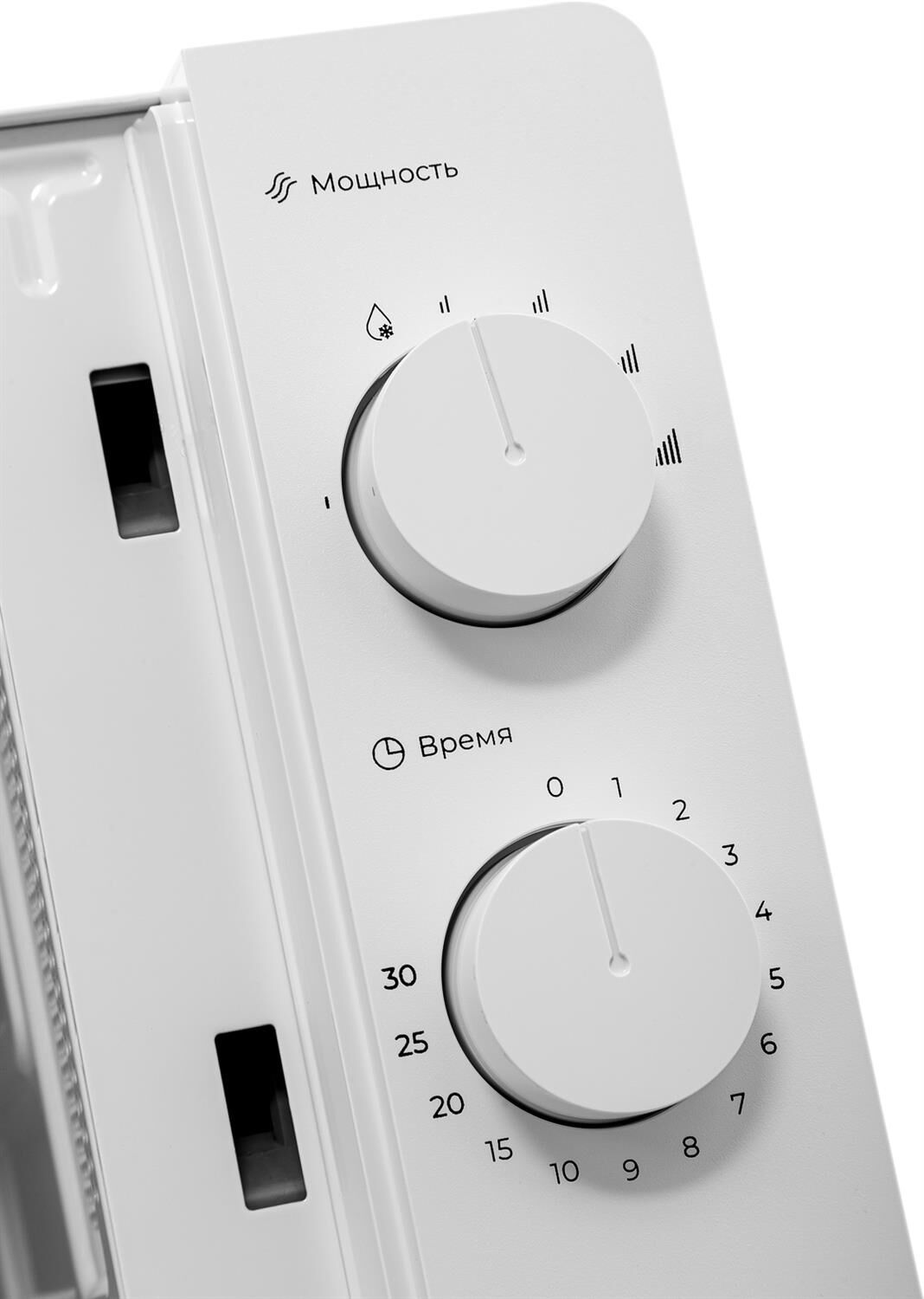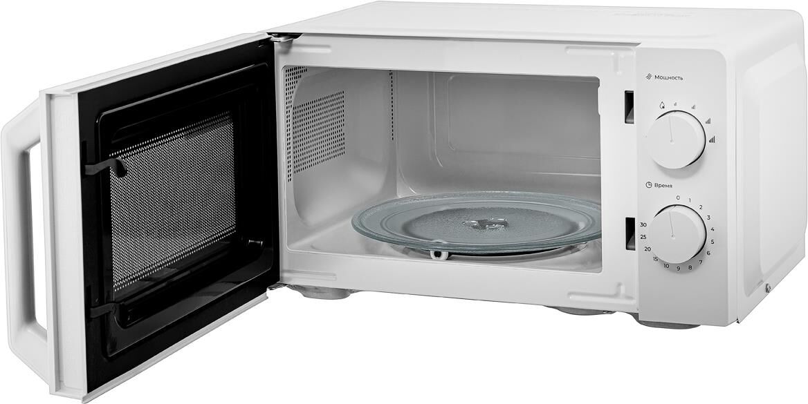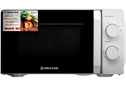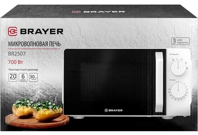 Внутренний объем: 20 л Номинальная микроволновая мощность: 700 Вт Номинальная потребляемая мощность в режиме СВЧ: 1100 Вт Защита от поражения электротоком I класс Рабочая частота: 2450 МГц Механическое управление 6 уровней мощности Режим размораживания Таймер до 30 минут Сигнал завершения приготовления Стеклянное вращающееся блюдо: O 245 мм Габаритные размеры: 241?446?349 мм Масса нетто: 10,5 кг Электропитание: 220-240 В, ~50 Гц