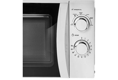 Параметры Номинальная потребляемая мощность 1100 Вт Номинальная выходная мощность 700 Вт Частота микроволн 2450 МГц Внутренний объем 20 л Таймер 30 минут Диаметр вращающегося блюда 245 мм Размеры камеры (В?Ш?Г, мм) 198?315?297 Габаритные размеры (В?Ш?Г, мм) 262?452?360 Вес нетто 10,5 кг Описание Микроволновая печь - электроприбор, предназначенный для приготовления пищи, разогрева и размораживания пищевых продуктов в бытовых и аналогичных условиях Цвет: белый Механический тип управления Открывание дверцы ручкой Вращающееся стеклянное блюдо диаметром 245 мм Звуковой сигнал окончания приготовления Таймер на 30 минут со звуковым сигналом 6 уровней мощности Режим размораживания