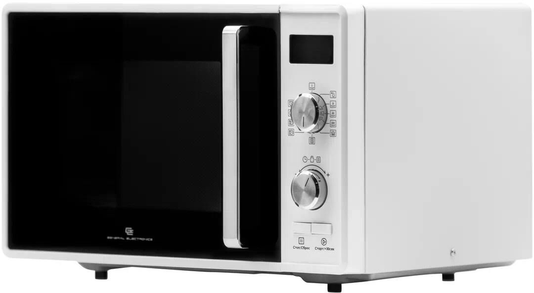 23 Литра, цвет - белый, мощность 800W, 6 автопрограмм, 11 режимов мощности, гриль - 1000Вт, функция разморозки по весу, быстрый старт, таймер. Сенсорное управление. Потребляемая мощность микроволновой печи (Вт) - 1250. Частота - 2450 MHz. Внутренний размер (ВхШхГ) (мм) - 314*347*201, размер коробки - 536*436*330. Вес (n/g) - 14,5кг