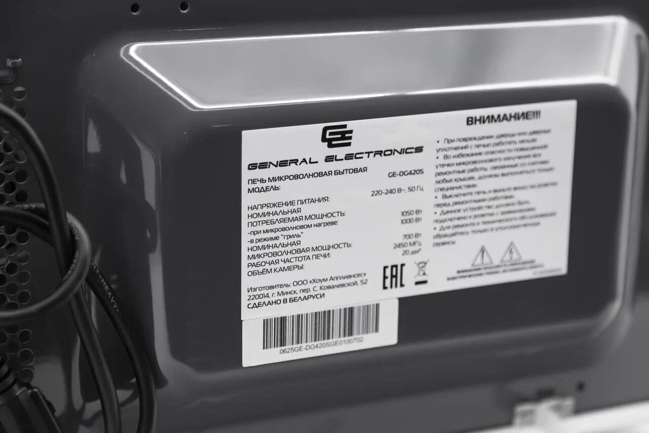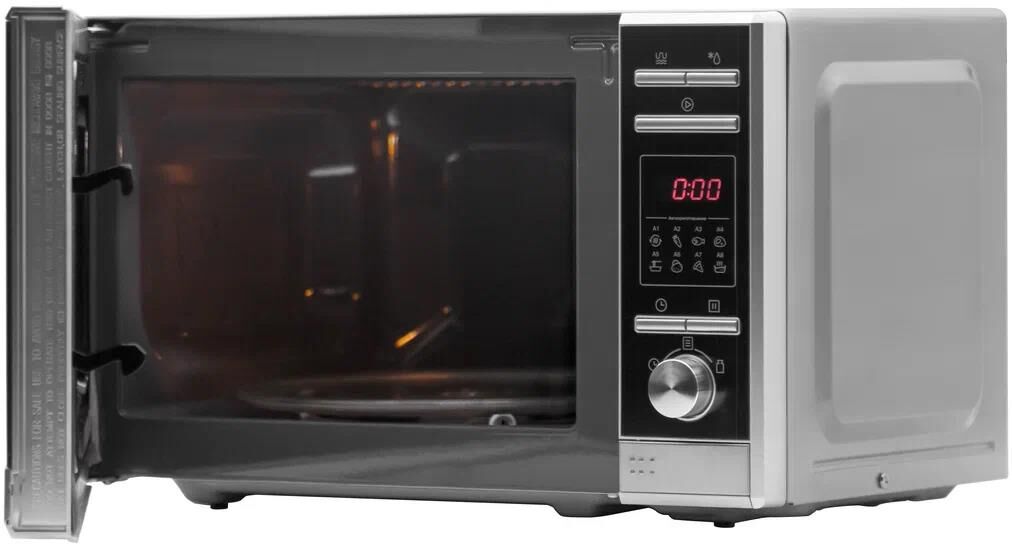 20 Литров, цвет - серебро, мощность 700W, 8 автопрограмм, 5 режимов мощности, гриль - 1000Вт, функция разморозки по весу, быстрый старт, таймер. Сенсорное управление. Потребляемая мощность микроволновой печи (Вт) - 1050. Частота - 2450 MHz. Внутренний размер (ВхШхГ) (мм) - 306*304*206, размер коробки - 488*380*291. Вес (n/g) - 10.3/11.6кг