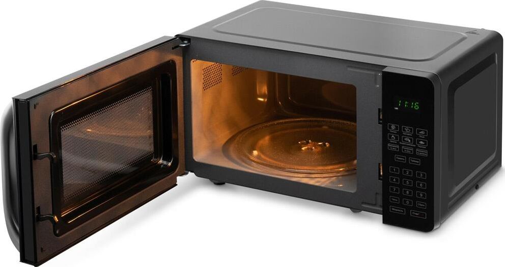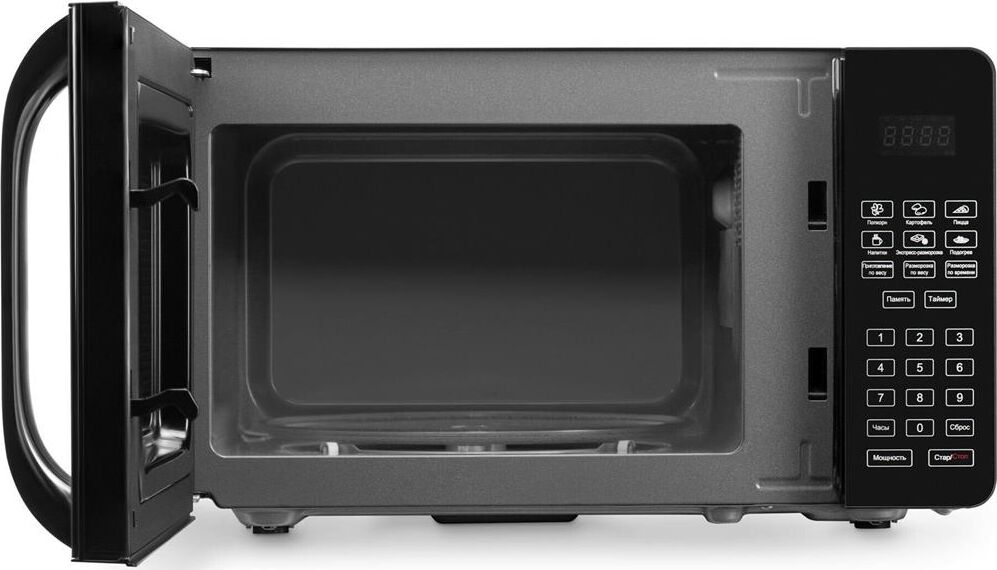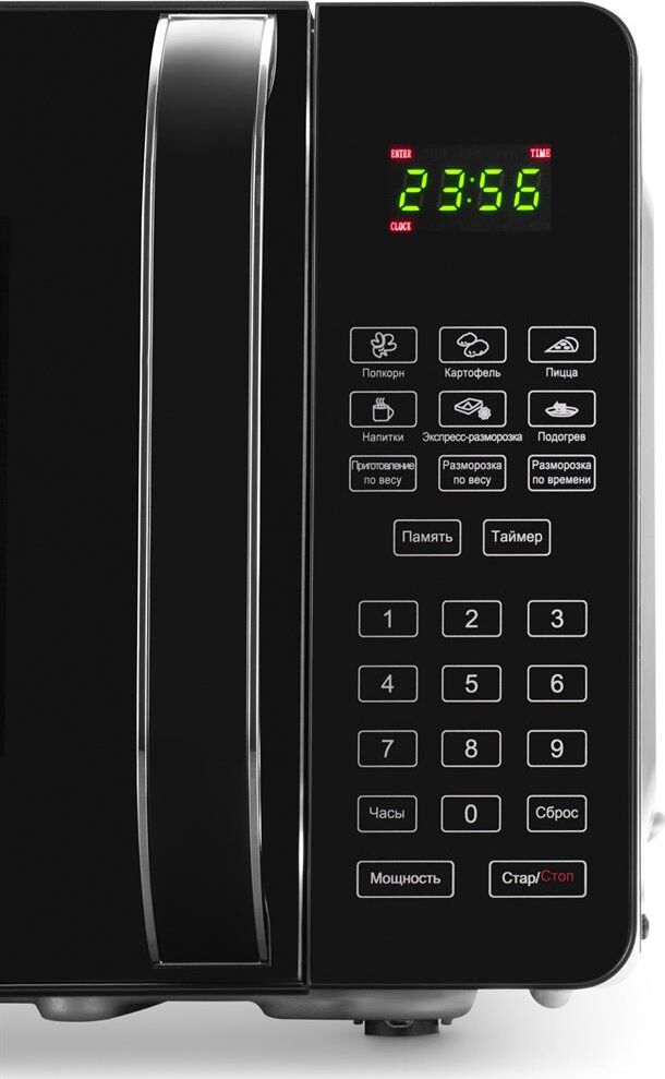 Объем 20 л; Мощность 700 Вт; Механизм открывания дверцы – ручка; Тип управления: электронное; Цвет: черный, инверторное управление мощностью, поворотный стол 245 мм, блокировка от детей; дисплей; зеркальная поверхность