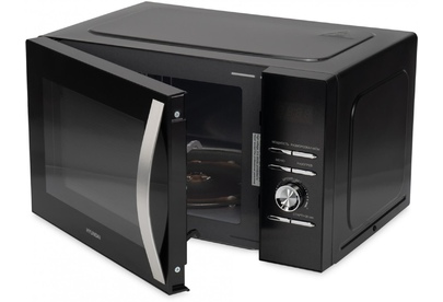 Объем 23 л; Мощность 800 Вт; Механизм открывания дверцы – ручка; Тип управления: электронное; Цвет: черный, Дисплей Диаметр поворотного стола 270 мм Блокировка от детей