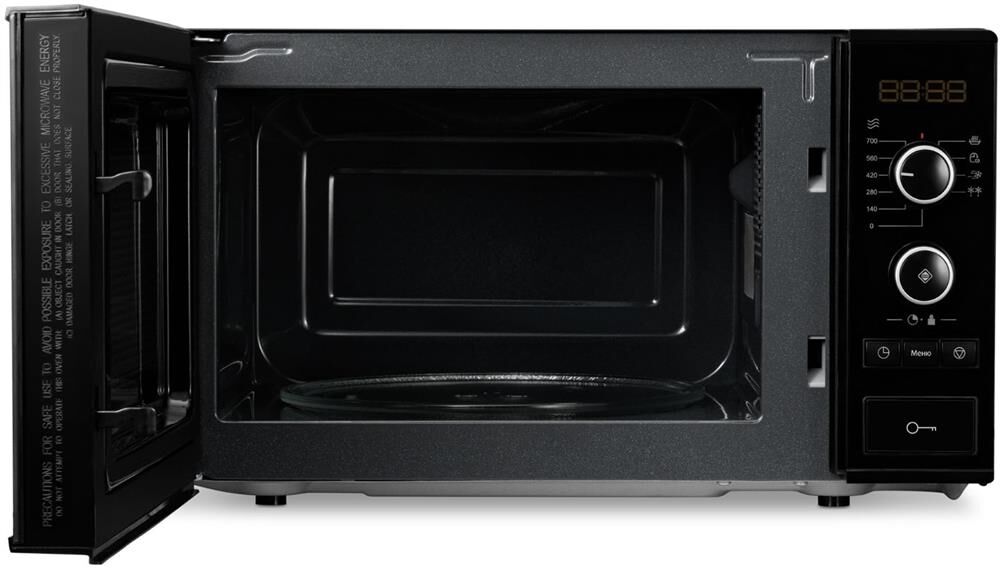 Объем20 л Тип управления электронное Мощность микроволн 700 Вт Дисплей Открывание дверцы ручка Внутреннее покрытие камеры эмаль легкой очистки Диаметр поворотного стола 245 мм Тип установки Отдельностоящая Автоматическая разморозка Автоматический разогрев Ускоренный разогрев Автоматическое приготовление Функция задержки пуска Блокировка от детей Вес 10.8 кг Цвет корпуса черный Срок гарантии 24 мес.