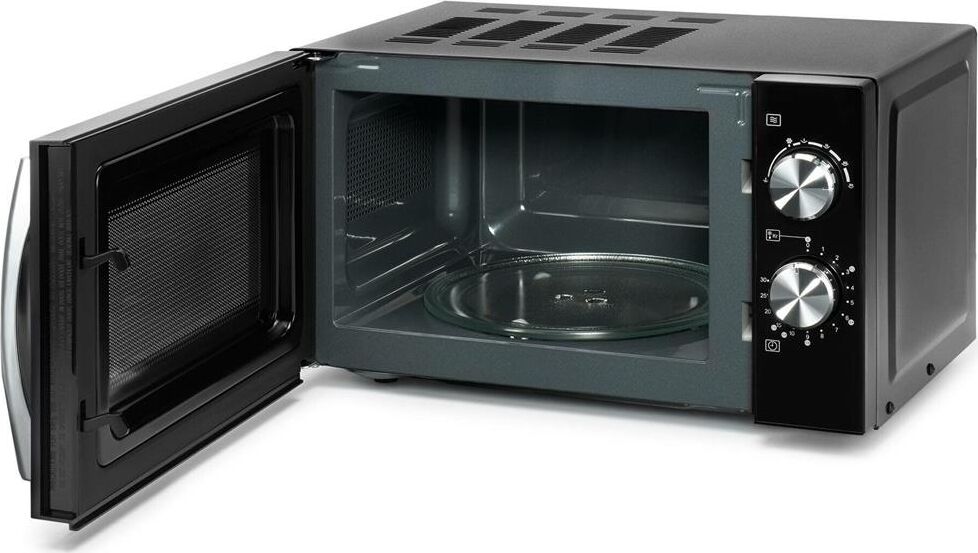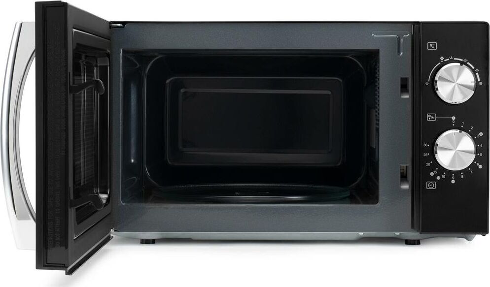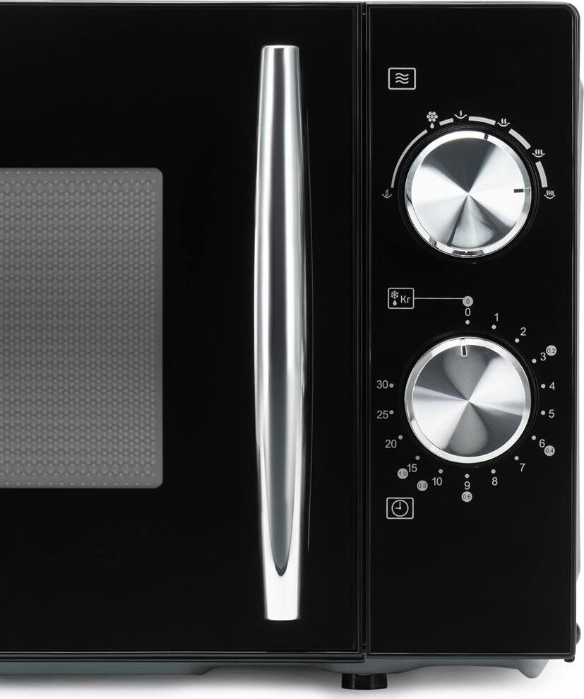 Объем 20 л; Мощность 700 Вт; Механизм открывания дверцы – ручка; Тип управления: механическое; Цвет: черный/хром, ручка - серебро, поворотный регулятор - хром.