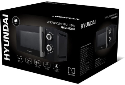 одель HYM-M2054 Объем 20 л Мощностьмикроволн 700 Вт Типуправления механическое Открываниедверцы ручка Диаметр поворотногостола 245 мм Размеры, вес Длина кабеля питания 1.01 м Цвет черный /серебристый Размеры (ШхВхГ) 44.6 х 24.3 х 36.0 см Вес товара 9.4 кг