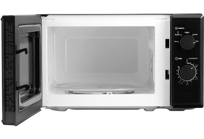 Микроволновая печь Starwind SWM5820 привлекает к себе внимание современным дизайном, корпус черного цвета подойдет для любого стиля интерьера. Оборудование имеет довольно простую конструкцию и компактные размеры. Использовать его можно как дома, так и в офисе. Бытовая техника поможет во время обеденного перерыва быстро подогреть еду. В домашних условиях микроволновую печь удобно использовать для размораживания продуктов, полноценного приготовления различных блюд. Мощность устройства составляет 700 Ватт. Внутренняя часть имеет объем в 20 литров, покрытие у нее из эмали, которая легко и быстро чистится. Управлять бытовым прибором необходимо с помощью поворотных рукояток, позволяющих установить нужно время нагрева и температуру.