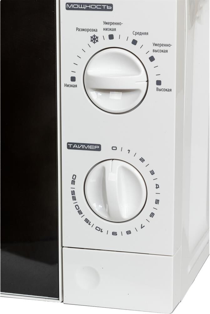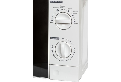 Печь микроволновая, объем 20л, выходная мощность 700 Вт, тип управления механический, 6 уровней мощности, разморозка, таймер на 30 минут, диаметр поворотного стола 245 мм, сигнал окончания приготовления.