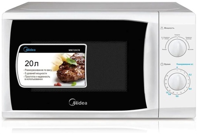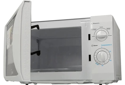 20 л, мощность микроволн 700 Вт, потребляемая мощность 1050 Вт, управление механическое, количество уровней мощности 5, тип открывания двери - ручка, поворотный стол 255 мм, таймер, размораживание по весу, больше / меньше, вес нетто 10,7 кг, размеры внешние (ШxГxВ) 440*345*260 мм.