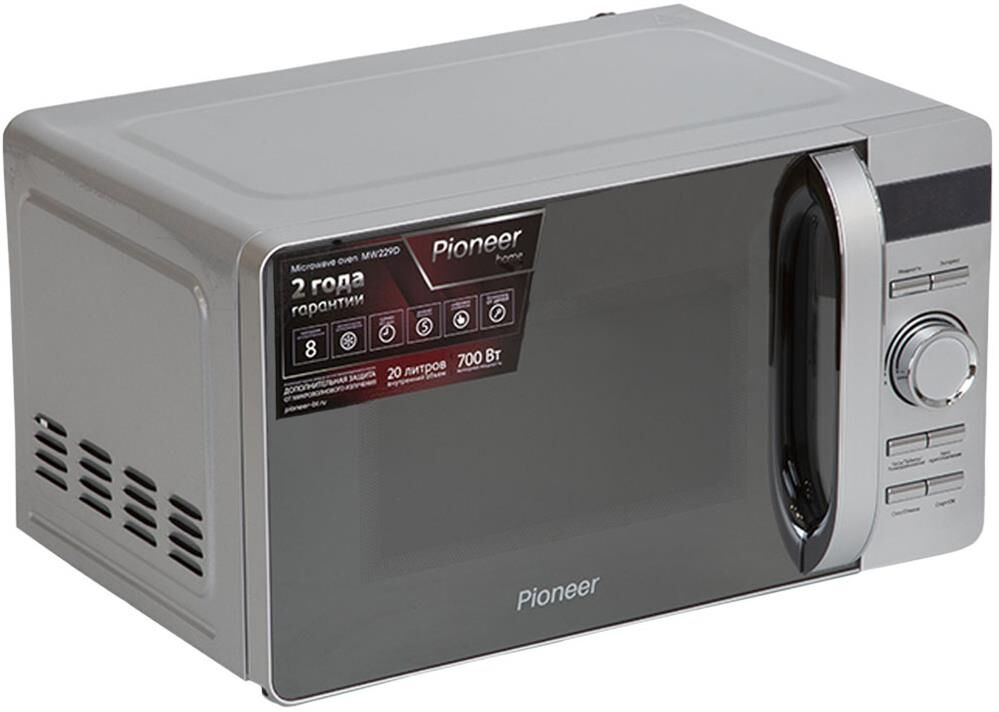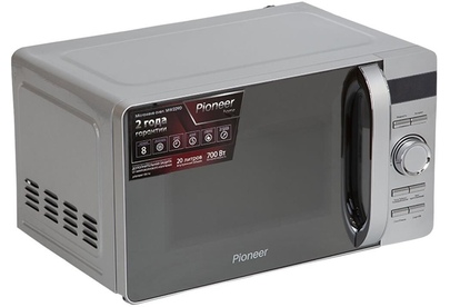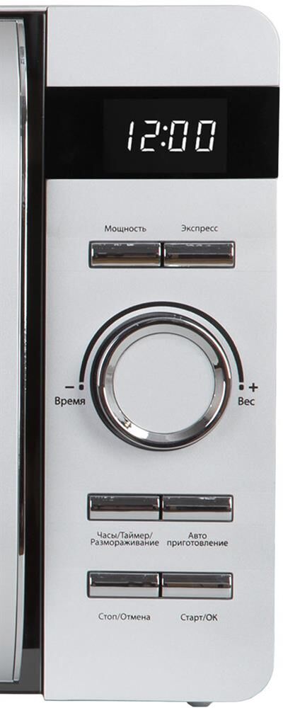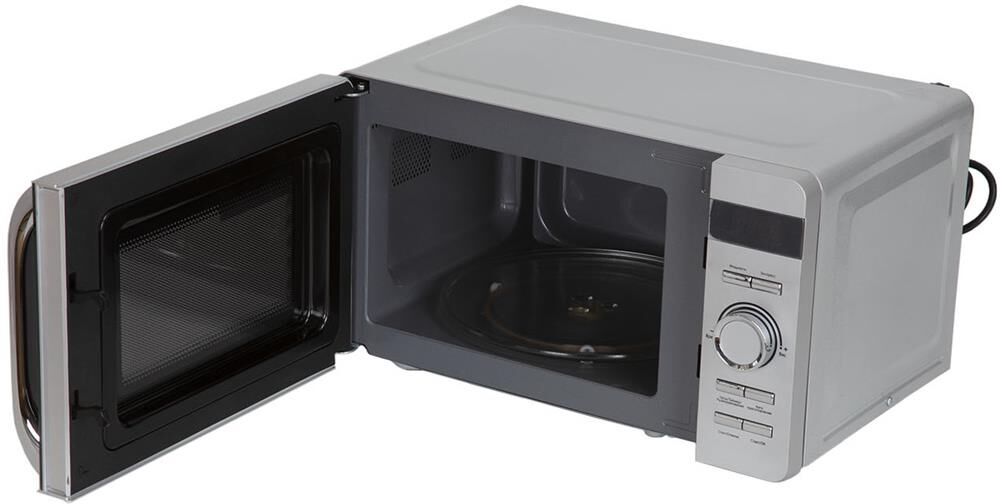 Микроволновая печь, внутренний объем: 20 литров, ыходная мощность печи: 700 Вт, тип управления: цифровой, диаметр поворотного стола: 245 мм, количество уровней мощности: 5, количество программ автоматического приготовления: 8, автоматическое размораживание, таймер: 60 минут, блокировка от детей, тип открывания дверцы: ручка, сигнал окончания приготовления, зеркальное стекло дверцы, цвет: серебро