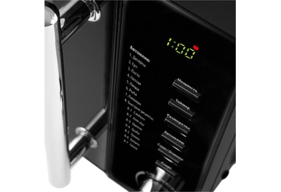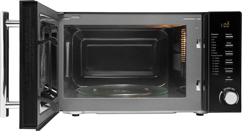 Объем: 20. Мощность микроволн: 700. Тип управления: комбинированное. Внутреннее покрытие камеры: эмаль легкой очистки. Вес товара: 10.98. Диаметр поворотного стола: 245. Открывание дверцы: ручка. Особенности: 10 лет гарантии на покрытие от коррозии. Номинальная потребляемая мощность – 1200 Вт.. Габариты упаковки (ед) ДхШхВ: 0.502x0.37x0.3. Вес упаковки (ед): 11.3. Длина кабеля питания: 1. Количество программ: 14. Таймер на отключение, макс. время: 60. Направление открытия дверцы: справа-налево. Гарантия: 12 мес.. Размеры (ШхВхГ): 45 х 26 х 35 см. Цвет: черный. Режимы: автоматическая разморозка, автоматическое приготовление, соло. Управление: звуковой сигнал окончания приготовления, регулировка мощности. Особенности корпуса: дисплей, часы. Дополнительные режимы: размораживание по весу, система равномерного распределения микроволн. Функции: блокировка от детей. Объем: 20 л; покрытие эмаль легкой очистки. Тип управления: комбинированное; открывание дверцы: ручка. Режимы: автоматическая разморозка, автоматическое