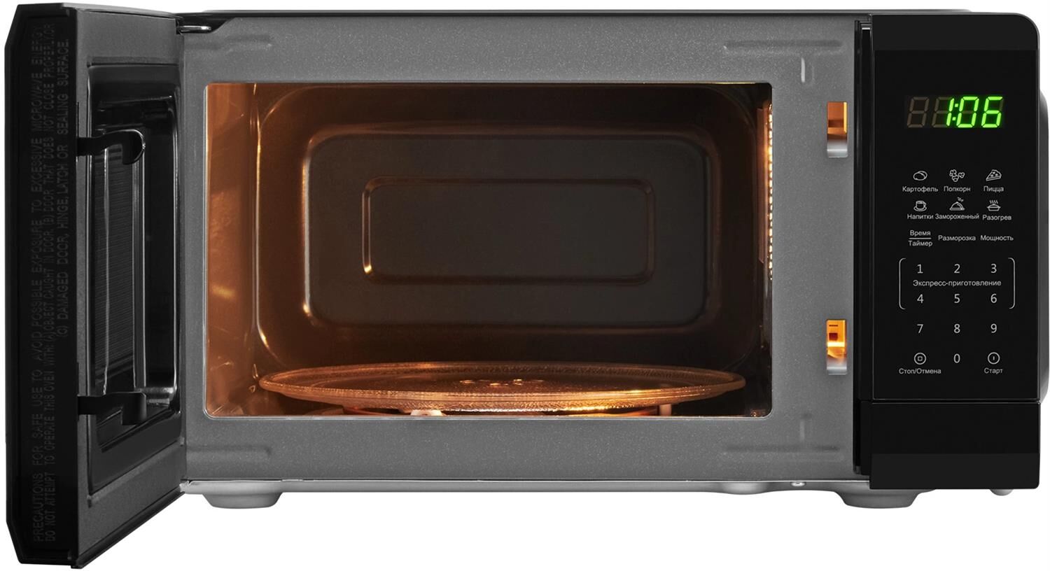 Мощность микроволн 700 Вт Объем 20л 11 уровней мощности Электронное управление Наличие дисплея Автоматическая разморозка Экспресс-режим приготовления Блокировка от детей Цвет черный Срок гарантии 12 мес