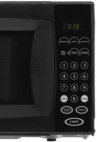 Мощность микроволн 700 Вт Объем 20л 10 уровней мощности Электронное управление Наличие дисплея Автоматическая разморозка Экспресс-режим приготовления Блокировка от детей Цвет черный Срок гарантии 12 мес