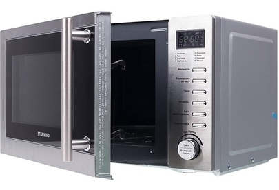 Мощность микроволн 700 Вт Объем 20 л 6 уровней мощности Электронное управление Наличие дисплея с часами Внутреннее покрытие камеры - эмаль Автоматическая разморозка Экспресс-режим приготовления Блокировка от детей Цвет серый/серебристый Срок гарантии 12 мес