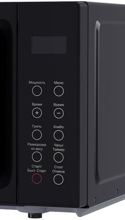 Печь микроволновая с ручкой, мощность гриля 900 Вт, мощность микроволн 700Вт, объем 20 литров, сенсорное управление, таймер, 5 уровней мощности, 9 автоматических программ меню, блокировка от детей, диаметр поворотного стола 24,5 см