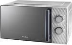 Особенности: Элегантная микроволновая печь универсального серого цвета. Панель управления с текстурированной поверхностью. Простое и понятное механическое управление. Качественные материалы отделки корпуса и его элементов - пластик, металл, стекло. Вместительная (20 литров) при компактном размере - не займет много места на кухне. Дверца открывается при помощи ручки, что гарантирует долгий срок службы. Общие данные: Габариты: 26.1x45.5x35.4 см Объем: 20 л Тип управления: механический Режимы работы: соло Мощность микроволн: 700 Вт Цвет: серый Вес: 10,5 кг Режимы работы: Режим разморозки Управление и функции: Тип открывания дверцы: ручка Подсветка камеры Количество уровней мощности: 5 Таймер: 35 мин Звуковой сигнал отключения Дополнительная информация: Диаметр вращающегося блюда: 255 мм Потребляемая мощность: 1150 Вт