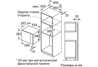 Размеры прибора 382 x 594 x 317 мм.Обьем духовки 20 л.Вес нетто (кг)16,658 кг. Материал духовки нержавеющая сталь.Цвет фронтальной панели Нержавеющая сталь.Тип конструкции Встроенный.Управление механический.Открытие двери Кнопка.Материал смотрового окошка стекло.Управляющие элементы Поворотный переключатель.Встроенная микроволновая печь в нишу 38 см: с функцией оттаивания, подогрева и идеального приготовления пищи.Микроволновая печь: экономия времени приготовления, разморозки и повторного нагрева посуды.