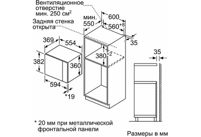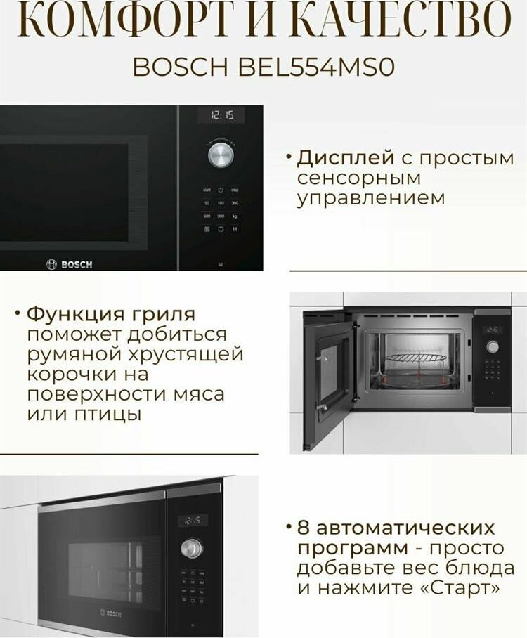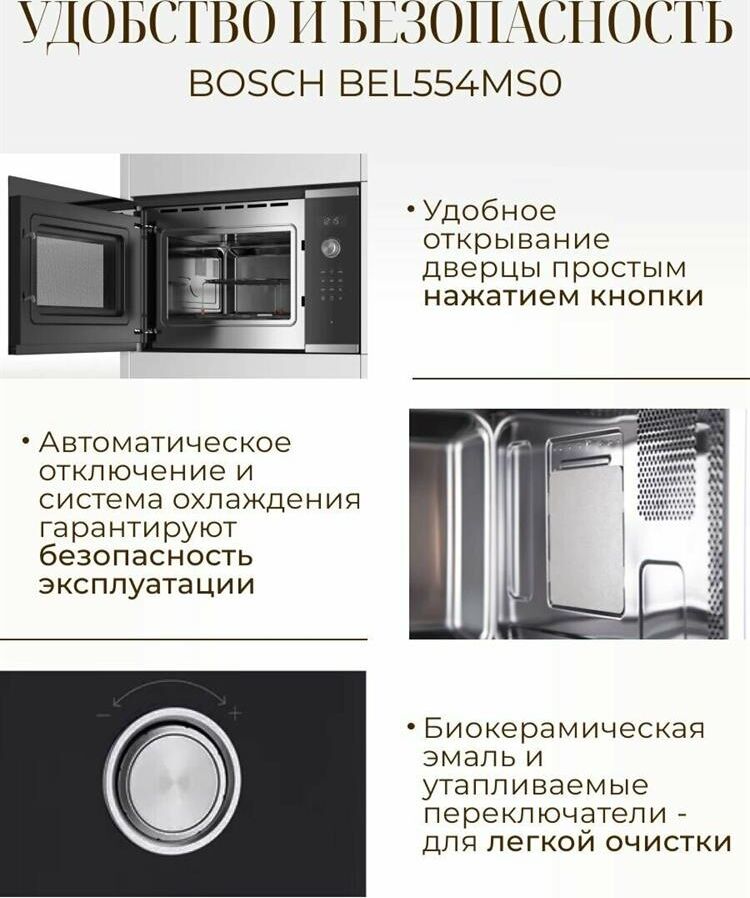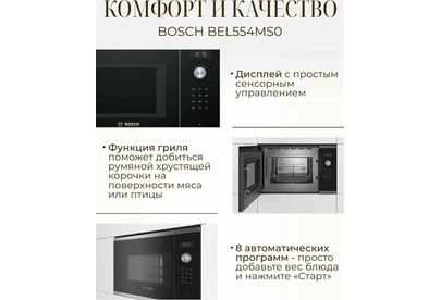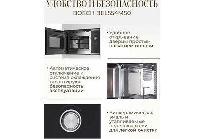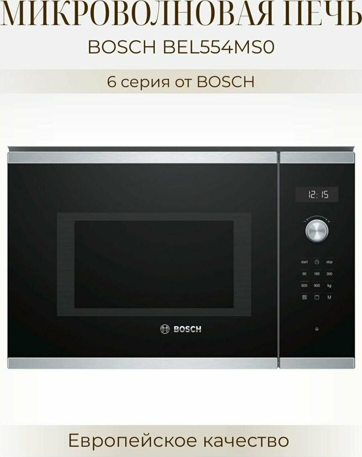 Печь микроволновая встраиваемая BOSCH Микроволновая печь BEL554MS0 25л. 900Вт черный/нержавеющая сталь (встраиваемая)