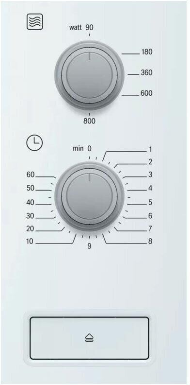 Объем: 20. Мощность микроволн: 800. Тип управления: механическое. Открывание дверцы: кнопка. Направление открытия дверцы: справа-налево. Внутреннее покрытие камеры: нержавеющая сталь. Диаметр поворотного стола: 255. Цвет корпуса: белый. Вес (нетто): 16.7. Габариты упаковки (ед) ДхШхВ: 0.655x0.385x0.435. Вес упаковки (ед): 14. Страна производства: Китай. Длина кабеля питания: 1.3. Внутреннее освещение: есть. Количество ступеней регулировки мощности: 5. Таймер на отключение, макс. время: 60. Гарантия: 12 мес.. Размеры (ШхВхГ): 59.4 х 38.2 х 31.7 см. Размеры ниши (ШхВхГ): 56 х 36.2 х 30 см. Размеры камеры (ШхВхГ): 30.8x20.1x28.2 см. Функции: блокировка от детей. Особенности управления: звуковой сигнал окончания приготовления, регулировка мощности. Режимы: автоматическая разморозка, соло. Мощность: 800 Вт. Объем: 20 л, покрытие нержавеющая сталь. Размеры (ШхВхГ): 59.4 х 38.2 х 31.7 см. Тип управления: механическое, открывание дверцы: кнопка. Режимы: автоматическая разморозка, соло. Функции: блокировка от детей